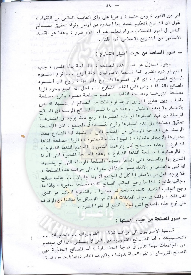 "المصالح المرسلة" كمبدأ من مبادىء تقنين الشريعة الإسلامية