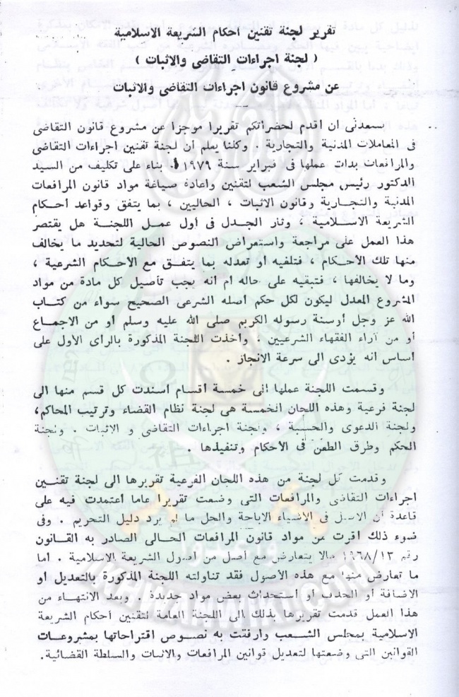 تقارير لجان تقنين الشريعة الإسلامية في مجلس الشعب عام 1983م